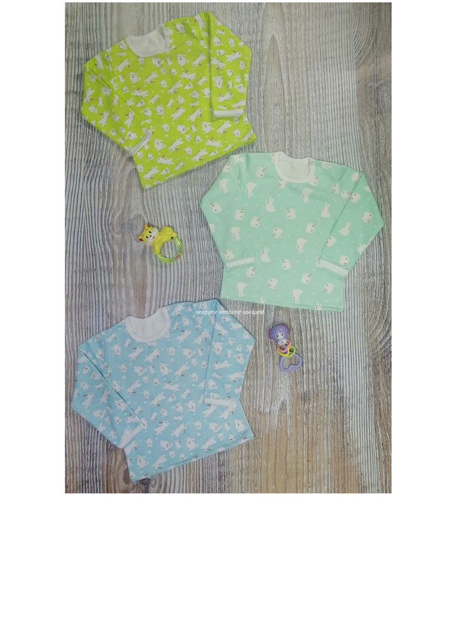 Кофточка выполнена из футера с начёсом, с 2 кнопочками на одном плече.